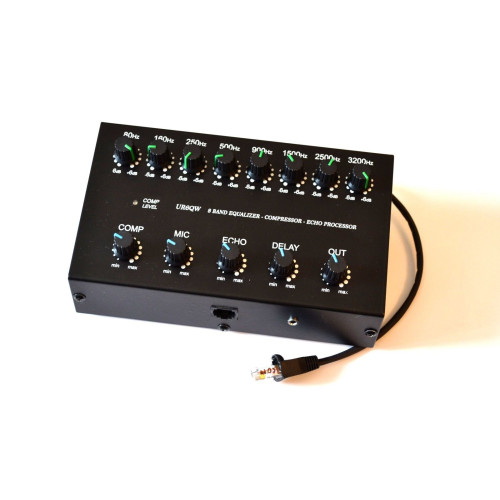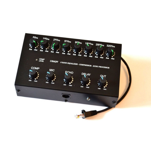 Thanks to its flexible input, compression and output level controls equalizer works with any type of transceiver and it is specifically designed for SSB audio with a bandwidth of of 3-4 kHz. Right from the 8-pin pole set connector 3.5mm for Heil company microphone. But we can set other jack, what you wish (like 6.3mm or RCA for PTT (on back side), is optional). Good workig with HIGH OUTPUT POWER up to 2kWt. Create that full range HiFi sound with emphasis on the low end, or bust pileups with a higher pitched sound and more compression, with the 8 band Equalizer the choice is yours.